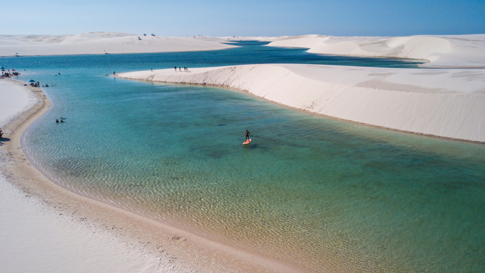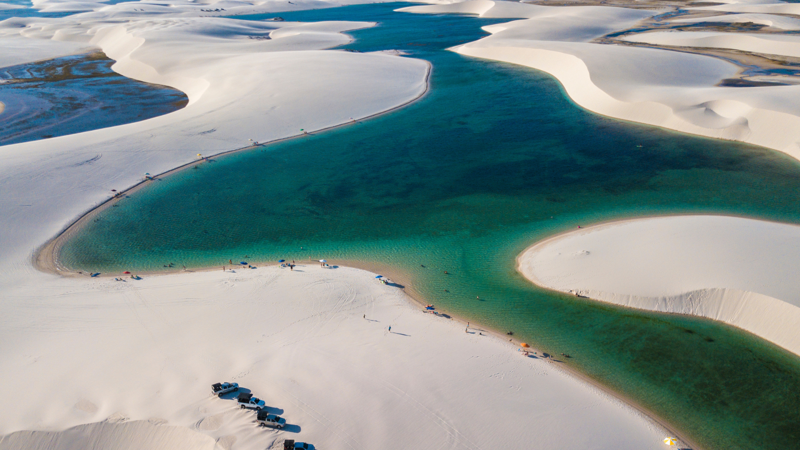 Imagine um deserto de dunas brancas com lagoas cristalinas formadas pela chuva. O Parque Nacional dos Lençóis Maranhenses oferece um visual surreal e experiências como passeios de 4×4, banho em lagoas e contato com comunidades tradicionais.