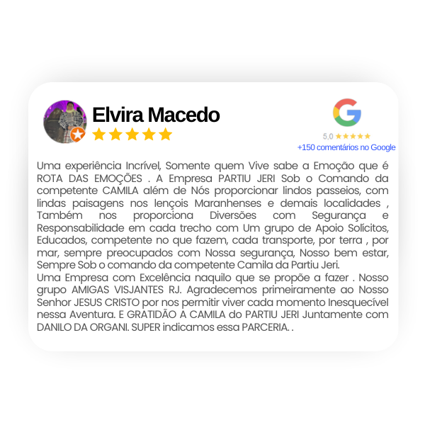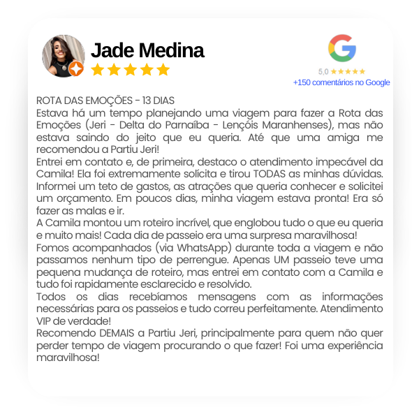 Viajar com a Partiu Jeri Turismo é ter a certeza de que cada detalhe foi planejado para tornar sua experiência memorável. Desde a escolha dos melhores horários para evitar multidões, garantimos que sua viagem pelos Lençóis Maranheneses seja leve, confortável e surpreendente.